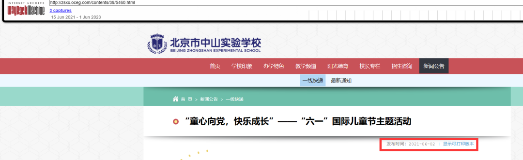但是这个消息听上去就不大对劲,所以我用截图中的原文查了一下,搜索到的一个结果,是学校官网的新闻,发布时间是2021年的6月2日,所以,这并不是最近的事情,而是2年前的儿童节。