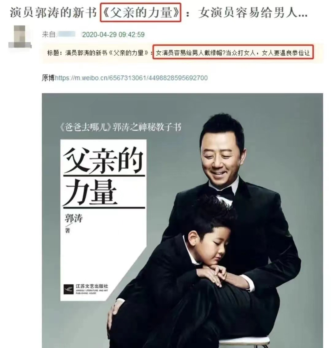 但是2020年,他却因为书中的一些描述成为了舆论口诛笔伐的对象,妻子也被推向了风口浪尖处。他说自己选妻子的标准是:“温、良、恭、俭、让”这五点,如此评价女人的标准,这让众多网友极不舒服。郭涛还称自己喜欢传统的那种贤妻良母型的,所以这么多年他一直等那个有缘人出现,直到39岁的时候他碰到了妻子李燃,比他整整小了17岁。