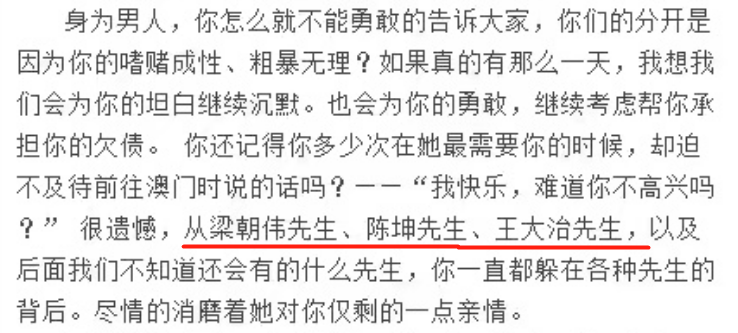 王大治被老瓜主怼了以后,他没回话,反而是董洁工作室出来发言。董洁工作室发了一封小作文,小作文比较长,锤爷就不放了,直接给大家说重点。大概就是指责潘粤明,嗜赌成性、粗暴无理,还有欠债,是“离婚爆料”事件的幕后推手,曾找记者跟了董洁一个月。当年董洁的国民度很高,她本身也长得很清纯,大家就都去骂潘粤明。还有网友找到了潘粤明在赌桌上打电话的照片,就这张:后来他经纪人出来接受采访,两位老人都在家跟着流泪。