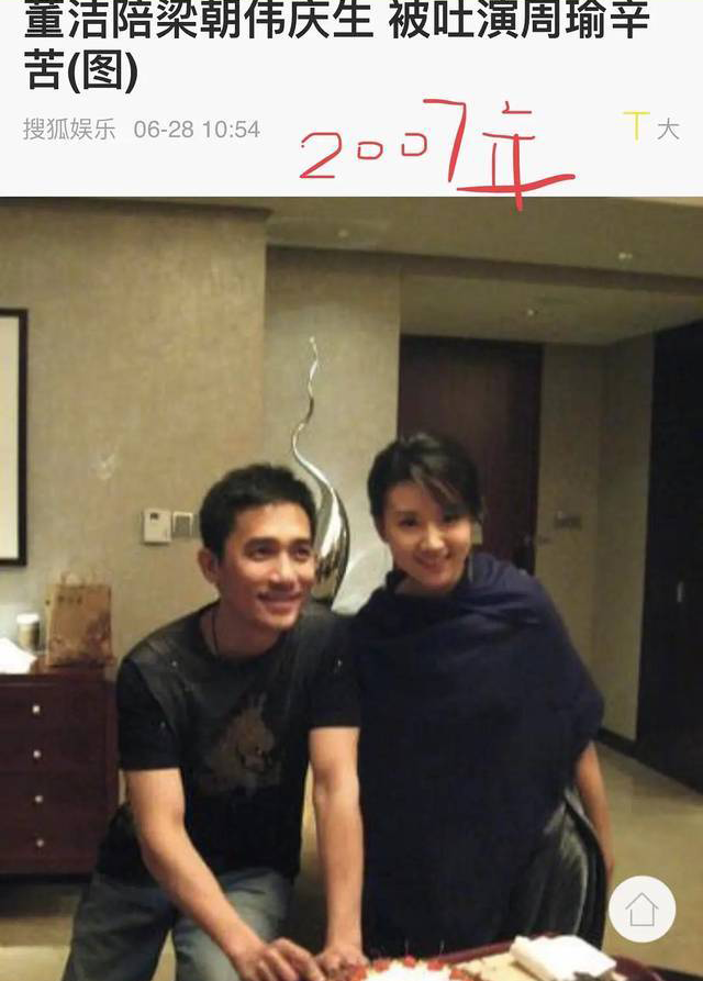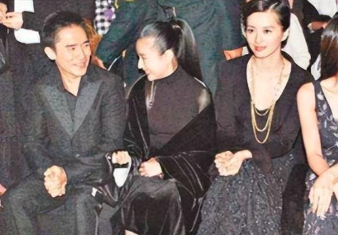 当时两个人还合作了《2046》,戏中还有一段尺度很大的激情戏。仔细看下面这张图,董洁、梁朝伟、刘嘉玲三个人的表情,真的非常奇妙。刘嘉玲一副女主人的模样;梁朝伟似乎没那么开心;董洁好像在往旁边瞟谁;梁朝伟45岁生日时,他都没回自己家,也没去找刘嘉玲,而是留在剧组庆生。而梁朝伟也在珠宝店买了一个金镯子,当时大家都以为,他是买给正牌女友刘嘉玲的。