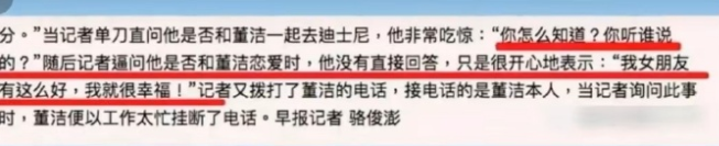 哦对,还有个好笑的事,这个挑拨离间的经纪人,在出庭时甩锅给董洁,说一切都是董洁指使的。这段离婚罗生门,一直到隔年3月份,董洁王大治激吻视频被曝光,才真正有了反转。说起来也是一个谜,锤爷从当年围观这个八卦,一直到现在再提笔写这个事,都没能想明白,董洁为什么会选王大治?而且,再回头看潘粤明董洁的恋爱经过,真是堪称恋爱脑范本了。