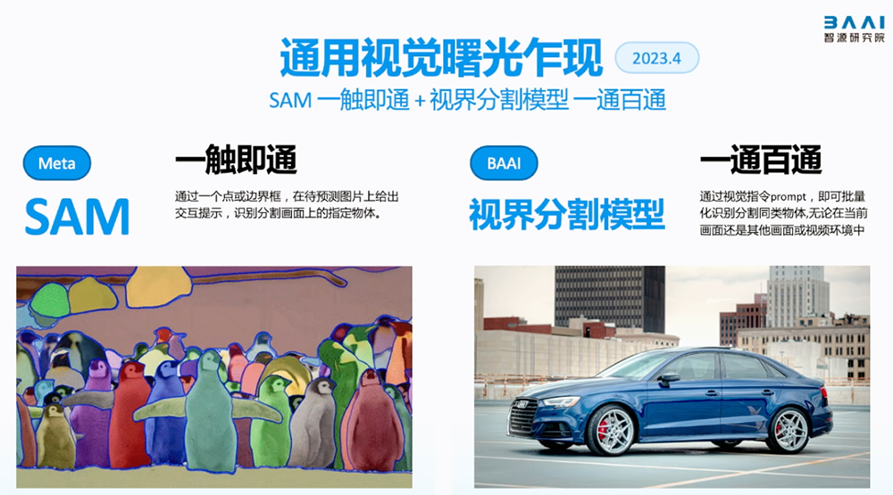 据黄铁军分享,在以智力服务为特征的时代,重要的不是模型本身比谁大比谁强,而是训练大模型的算法和技术本身是否够先进、训练成本是否能够有效降低、模型智能的能力是否可信可控。智源正将许多产学研单位的智慧汇聚,以开放方式进行协作,为大模型技术体系的发展添砖加瓦。他告诉智东西,作为一家非营利机构,智源研究院立足科研,会基于自研通用视觉模型和语言模型做一些Demo演示。目标是以开源开放的方式提供技术,促进技术发展与迭代。除了大模型技术路线外,智源也在坚持研究生命智能和AI4Science。![]()
