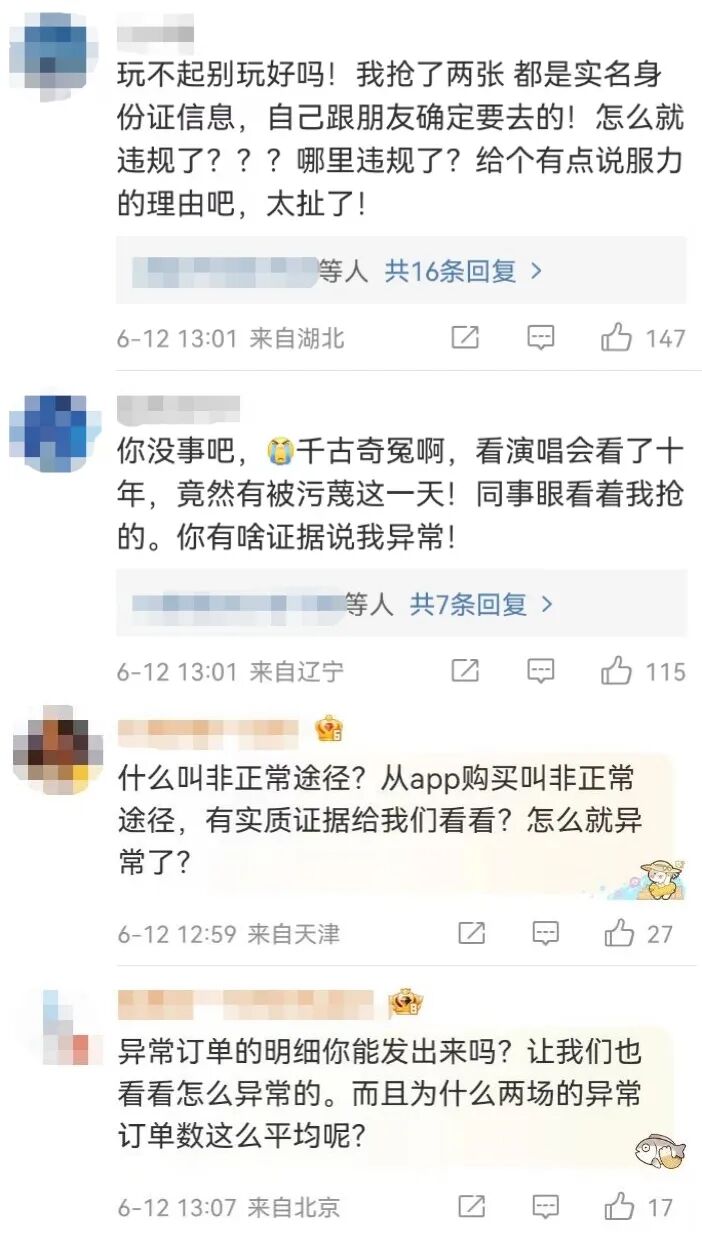 但是,部分消费者并不认同纷玩岛给出的说法。在其微博评论区,有网友称自己是通过正常途径购买的门票,但此次也被退票,并喊话平台给出“异常”的订单号和相关证据。