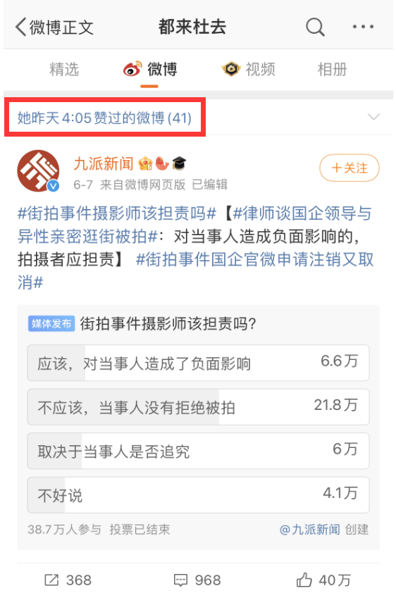 然而,董某在凌晨4点多点赞了两条微博动态,都是有关摄影师是否应承担责任的投票动态,这无疑展示了她的态度。