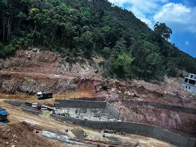 据介绍,铂金海岸是一个长达十年的规划项目。目前占地50公顷,整个项目预计投资99亿美元。在项目现场,工人、挖掘机、拉土大车正在半山腰上忙碌施工。