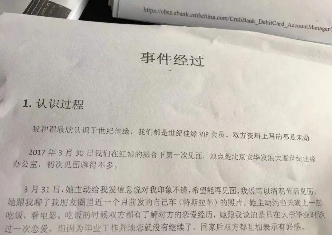 实际上,这起案件的男女双方相识于婚恋交友网站。相亲这种途径,省去了试探和暧昧阶段,双方都更直奔主题,代入了效率与功利主义的视角。