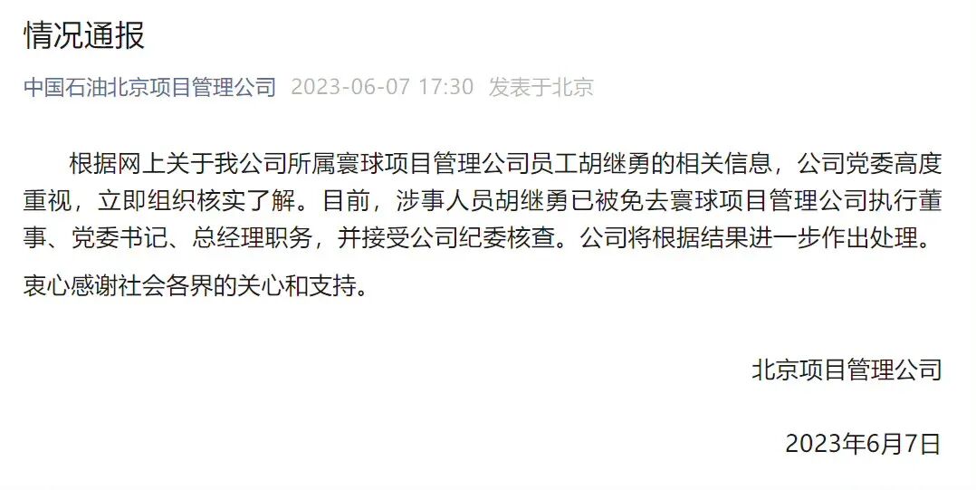中石油北京某公司领导胡继勇