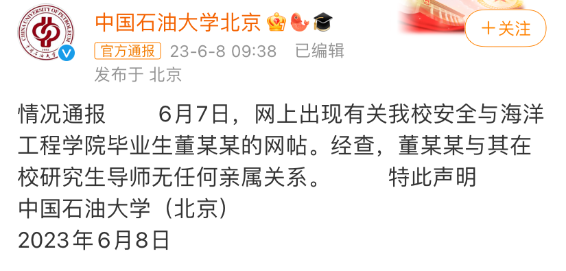 也已经火速发布情况通报