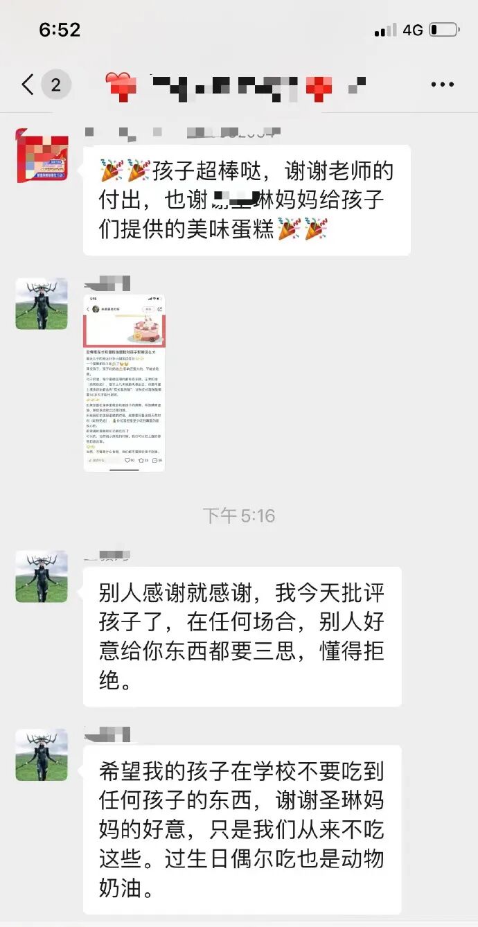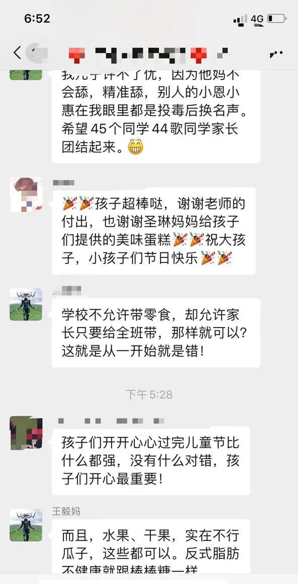 从聊天记录看,事情起因是幼儿园六一儿童节搞活动,一位孩子的妈妈提供了蛋糕,正当其他家长表达感谢的时候——