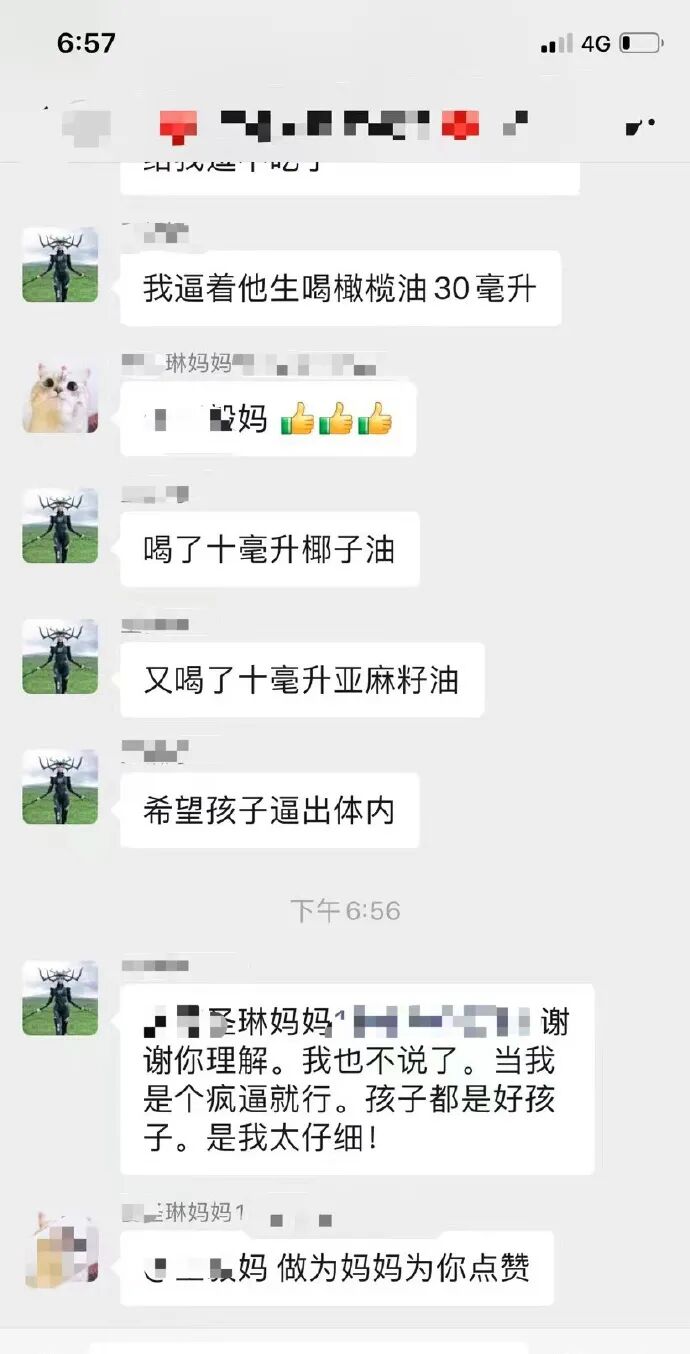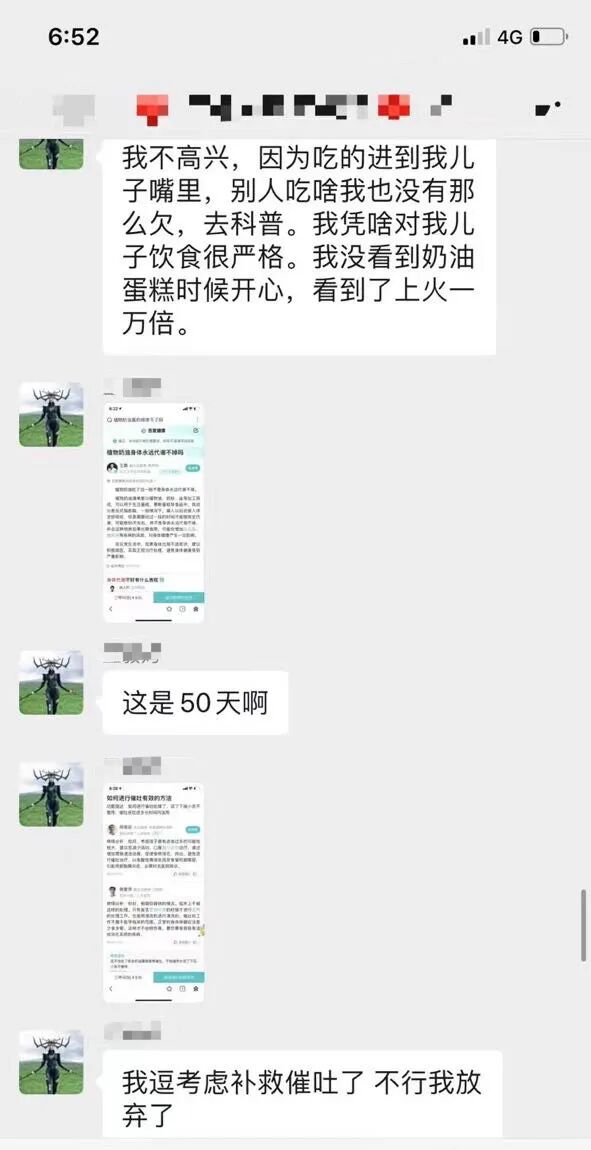 因为孩子在幼儿园里吃了一块奶油蛋糕,回家后被亲妈灌下50ml油进肚子又抠嗓子催吐……