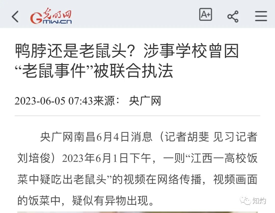 记者查询资料发现,这已经不是该校第一次出现“老鼠事件”,早在2021年,南昌市场监督管理局就曝光过一次此类事件。