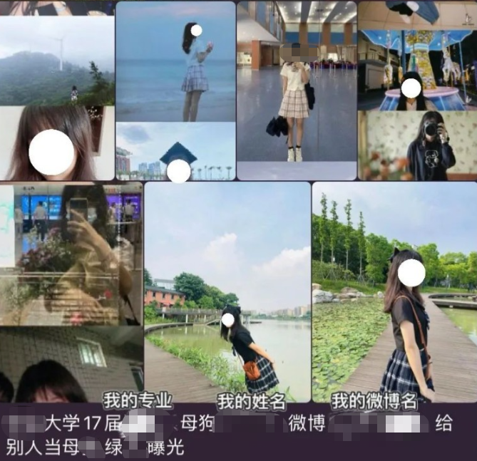 在图片上写满「母狗」、「绿x」等下流侮辱的词汇。