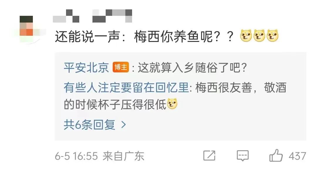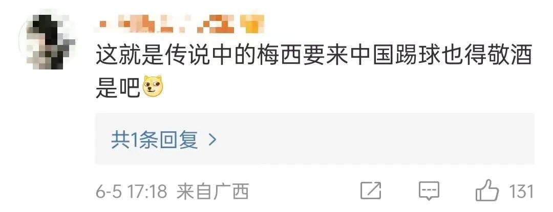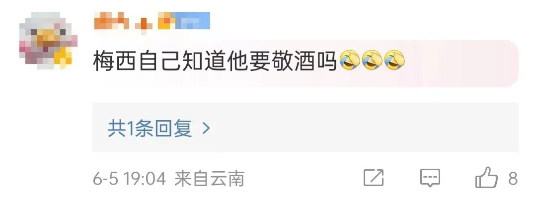 “这就是传说中的梅西来中国踢球也得敬酒是吧”