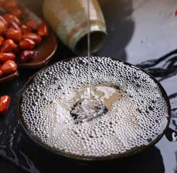 像赖正忠封坛15酒的酒花倒出来可以明显的看到十分均匀、密集、细腻、而且十分好看。