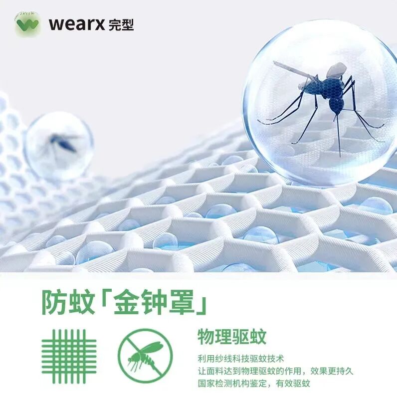 刚拿到这条裤子,只是贴在胳膊上滑了一下,就明显感受到一阵清凉拂过肌肤渗入毛孔,好似一阵薄荷味的清风,让人精神一振。它使用WearXLAB超细纤维凉感科技面料,利用超细纤维沟壑,产生虹吸作用,增强凉感,凉感系数是国家标准的2.13倍!不夸张地说,一条完型八防裤=一台行走的小空调,时刻制造冷气,冰爽抚慰每一个毛孔!看,和普通休闲裤比,完型凉感八防裤明显更凉快,上身“1秒清凉”,体感降温5℃左右!🤫小声提一嘴:在试穿时,隔着小内内都清晰地感受到那股舒爽的凉意,真的好舒服!再喊多汗体质的男同事穿上身,出门转了一圈进行体感对比,用体温枪自测关键部位分别是35.4°、38.7°。他遛弯回来直呼相见恨晚,说完型的这条裤子穿着明显感觉到下面更凉快、更透气。穿着这么凉快,除了自家的凉感黑科技特别优秀,跟面料透气性好也有很大关系。你瞧这蒸气,瞬间就从面料里透出来,肉眼可见的冰爽透气!特意称了一下,全裤仅重约180g,还没两个鸡蛋重。上身几乎感受不到重量,没有束缚感,只有宛若无物的沁凉~穿上它,不管你汗腺多发达,多容易燥热,运动时也不会再捂着闷着了。反而让你有种胯下生凉风的快意舒畅!走起路来都更得劲儿了~还没完呢!这款宝藏凉感裤,多的是让人眼前一亮的惊喜。(毕竟人家叫“八防裤,肯定优点多多~)除了让人“透心凉心飞扬”的凉感优势,还值得一夸的就是它能防异味!大家都懂的,夏天热起来真的很难受,稍微走几分钟就开始出汗。尤其是下半身汗腺更加发达的男生们,汗水吸进裤子还会产生一股汗馊味儿,气味之浓郁社交距离内就能闻到,特别容易社死。面料里特别添加防抗异味因子,除异味效果甚至高于国家标准。减少大家在穿着中可能产生的异味,让你一整天都保持干净清爽。利用纱线驱蚊技术,让面料达到物理驱蚊的作用,比一般化学涂层驱蚊效果更持久,多次水洗依旧能驱蚊。夏天蚊虫多,有了这条防蚊「金钟罩」守卫你的下半身,傍晚出门散步、去山林徒步、河边溯溪……![]()