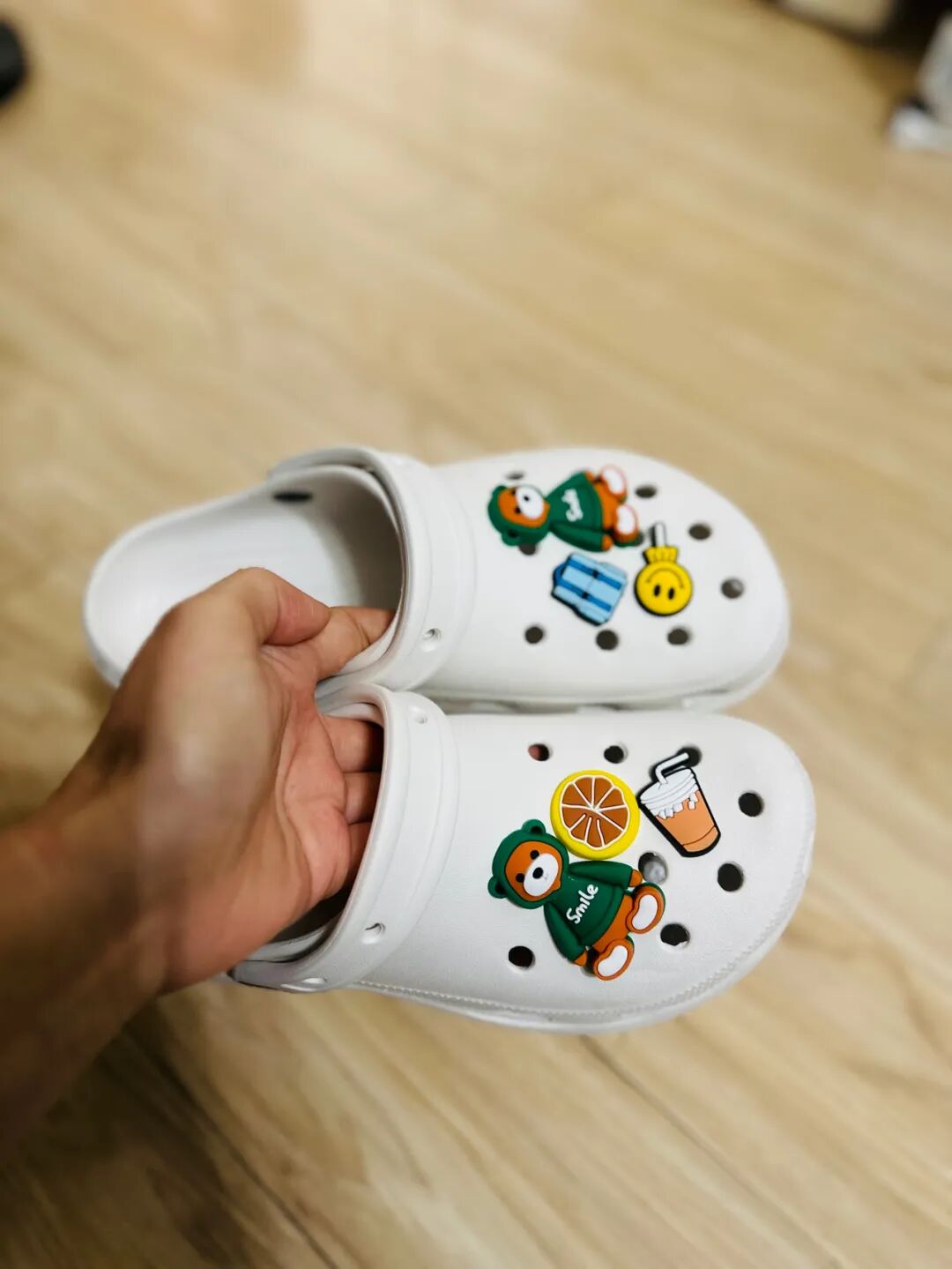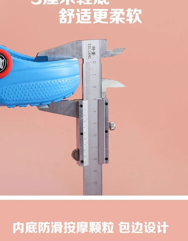 要说谁家的娃能拒绝这么可爱又充满卡通童趣的小拖鞋呢,也就2杯奶茶的钱,给娃安排上两双替换着穿也不心疼。主要是!!!这款洞洞鞋又可爱又便宜,性价比贼拉拉的高,只选一双着实是有些为难了,话不多说,上图给你们瞅瞅:是不是很可爱呢,鞋底厚厚的,但是却很轻,娃们上脚没什么负担,柔韧性一绝!办公室小脚妹子也上脚试了一下童鞋,说是踩屎感般的柔软,非常舒服。同样的,因为考虑到娃们喜欢跑跑跳跳,所以这款鞋底全部都做了防滑纹路,并且做了加深。这样贴心的设计对于娃们的安全性+防滑性而言,实在是太有必要了。鞋面部分的材质也很柔软,宝妈们不用担心娃们穿久了会摩擦导致脚背脚后跟泛红和破皮。测试了一下,回弹力很强,所以说,家有调皮小猴娃的家长们,这款弹性好,耐磨防滑的洞洞鞋还是很有必要入手的。还送6个可爱小卡扣(款式随机),小朋友们可以自己组合搭配,穿鞋也能玩出DIY新花样,是不是很赞~-点击下图立即购买-
