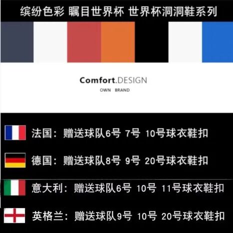 其实在给大家挑选男鞋的时候真的犹豫了很久,用同事的话来说:大多鞋子都太娘了,但是普通黑色深蓝色还挺丑的,不符合他气质(呵,自恋)。所以连续pass了好几家男款洞洞鞋,理由都是因为太普通了。直到看到这款世界杯主题洞洞鞋,不禁想尖叫:这不正是为了广大男性,尤其是足球爱好者们专门设计的洞洞鞋吗。不仅符合了“舒服”,还符合了“特别”,“与众不同”的要求。当然啦,和女士款儿童款洞洞鞋一样,这款男款世界杯主题洞洞鞋的材质也是和C家N家同厂的,用料做工都很扎实,颜值也很酷,妥妥“斩男”。言归正传,我们来看看这款男款的世界杯主题洞洞鞋为什么值得推荐吧。环保EVA材料,安全无异味,轮胎纹路的防滑鞋底也使得鞋子的抓地力提升。尤其中间鞋底部分规则凸起的颗粒可以和人体脚底的穴位重合,按摩脚底之外,还能很好地加强脚底防滑力。这款洞洞鞋,它可是满足了年轻人在舒服之余的时尚追求,上脚凉快,颜值也很高。不同色系不同球队,这次同样也有给大家安排同类球衣鞋扣,DIY搭配,个性穿搭,让男士也能体验一下DIY的快乐。天猫特惠的价格是119,但现特惠价仅69元,4个颜色可选,想必没有哪个大男孩可以拒绝吧。最后,来看看它们家专业的生产车间,每一处细节都被认真对待,这才足以成就了这款老少皆宜的洞洞鞋。好啦,今天给大家一口气把一家三口夏季所需的洞洞鞋都给安排上了,不过是几杯奶茶的价格,如此划算又高性价比,怎么能不多来几双呢~-点击下图立即购买-