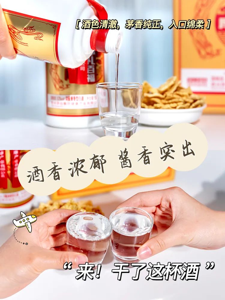 厚礼百福酒让人一喝难忘的原因,就在于既有浓香的甘爽微甜,回味又有酱香的丰满细腻,两种口感竟然还能格外协调,浑然一体。浓酱兼香型白酒,顾名思义就是“兼有两种香型的白酒”。厚礼百福酒属于“酱大于浓”——以酱为主的醇厚型流派,口感整体会更偏酱香。入口绵柔醇厚,口感丰富、容易下喉,回甜明显,喝起来特别醇和顺畅。虽然是52酒精度的高度白酒,但却不像想象中辣口,甚至经过喉咙时也不觉得很刺激,颇为柔顺细腻。更难得的是它“好喝不上头”,因为是纯粮酿造,喝完不仅唇齿留香,而且真的很舒服!不像一些劣质酒会让人头痛头晕,甚至到第二天都还在难受……亲朋好友好不容易聚在一起,要喝就喝好酒,要送也要送好酒。如果还没品过浓酱兼香型白酒,厚礼百福酒会给你惊喜,打开新世界的大门!-点击下图立即购买-