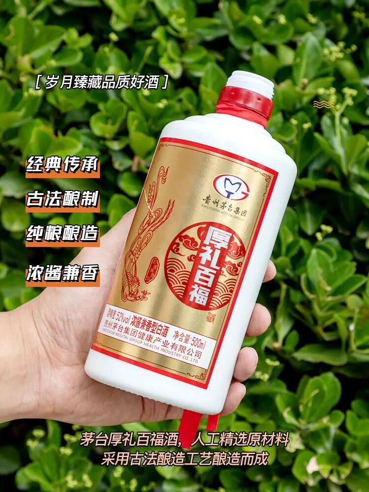 酒之于中国人,远不止口腹之乐,喝的是一种礼仪、氛围、心境。逢过节家人团聚,饭桌上饮酒,喝的是团圆、幸福的氛围。好友相聚、商业往来喝酒,喝的是人际交往、商业合作。而在各种酒当中,与中国传统节日分不开的,永远都是——白酒!白酒,是流淌在中国人血液里的情怀;白酒,是中国人追求一生的仪式。“中国只有两种白酒,一种叫茅台,一种叫其他白酒。”现如今,茅台酒早已经是市场上的硬通货,价格年年都水涨船高,很多人甚至会把买茅台当做买理财产品。茅台的好,全世界都知道,但3000多元一瓶的市场价,对于我们普通人待客、送礼,有点不太现实。茅台集团旗下有其它酒款,同样使用茅台引以为傲的传统酿造技术,价位却更亲民、性价比高!作为茅台集团出身,这款酒的品质和口味当然经得起考究,毕竟茅台可不能随便砸自己的招牌。标志性的白瓷瓶,沉稳大方,任何时候提在手上、摆在桌上都底气十足。打开瓶盖,芬芳酒香飘入鼻腔,酒香浓郁而不呛鼻,一闻就像陈年老酒般令人沉醉,喝完的空杯都能久久留香。慢慢倒入杯中,酒液澄澈透明无杂质,酒花细密饱满,晶莹剔透。入口醇香幽雅,还带点淡淡的甜味,即使对于喝不习惯白酒的人来说也不会太辣口。酒体过喉不刺激,细腻丝滑,微微粘稠,数秒后依旧有回味,整体上酱香味更突出一些。同事聚餐喝过后,都觉得是很舒服的微醺感,不会头晕头痛。这款是浓酱兼香型白酒,52%酒精度,在酿造工艺上结合了浓香和酱香工艺的优势,才能打造出丰富有层次的酒香。闻之清香,入口浓香,回味酱香,三香俱全,实乃人间美味!如此好酒,当然是来自优选的原材料、以及传承百年的酿造工艺。厚礼酒是用贵州茅台酒传统工艺酿造,以优选高粱为原料,用小麦制成高温曲,经层层工艺人工制曲,百年老窖古法发酵。大气的白瓷瓶、精致的礼袋包装,加上贵州茅台集团响当当的招牌,妥妥拿得出手!一箱4瓶,都可以扫描验证真伪,而且外箱扫描价格是1598,送礼档次够高够体面~某宝的活动价也要599元,今天直接帮你省掉400元,花小钱买大面子!这次还给大家争取到了额外福利,推文期间下单满10箱再赠茅台集团酒具一套。![]()