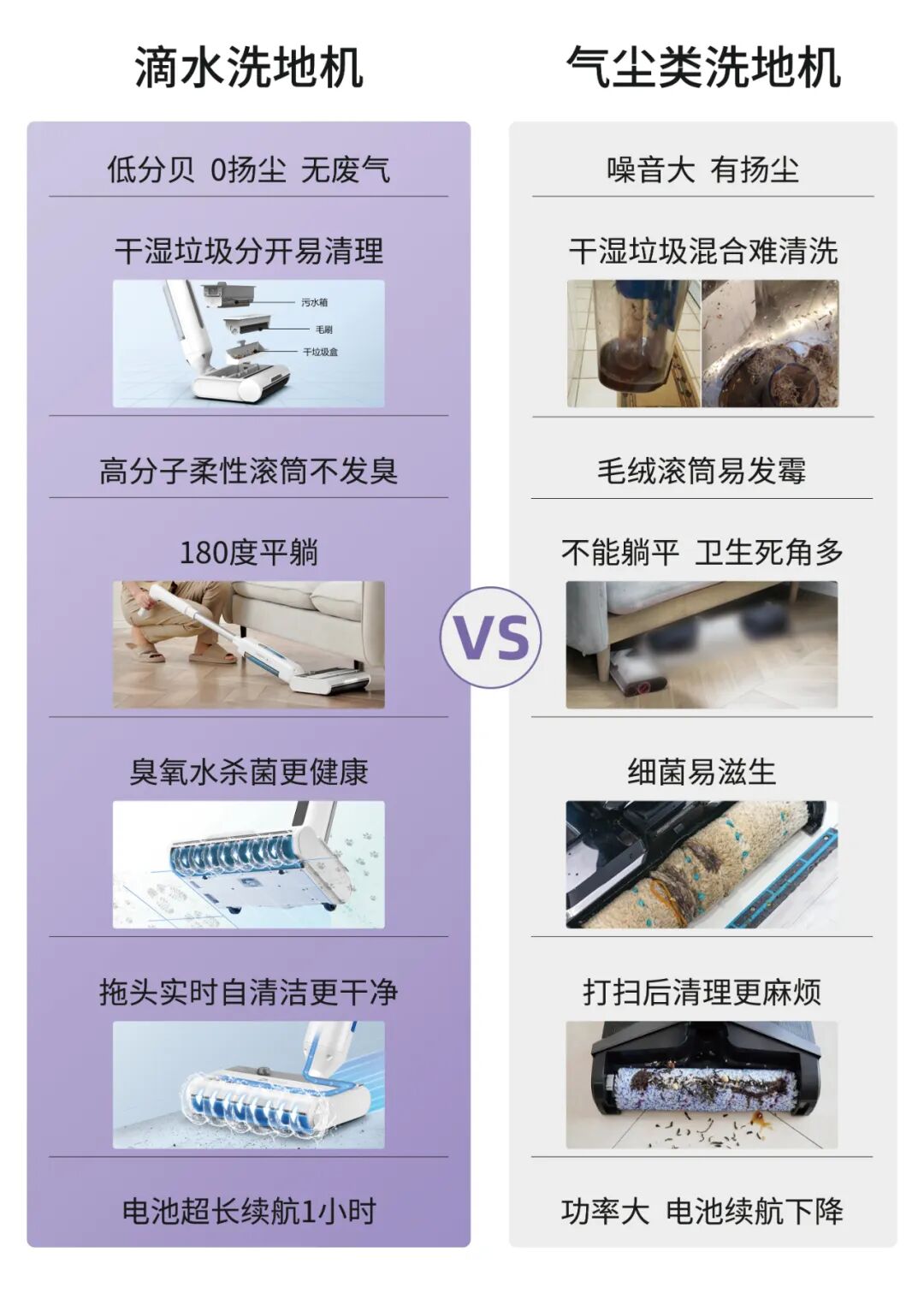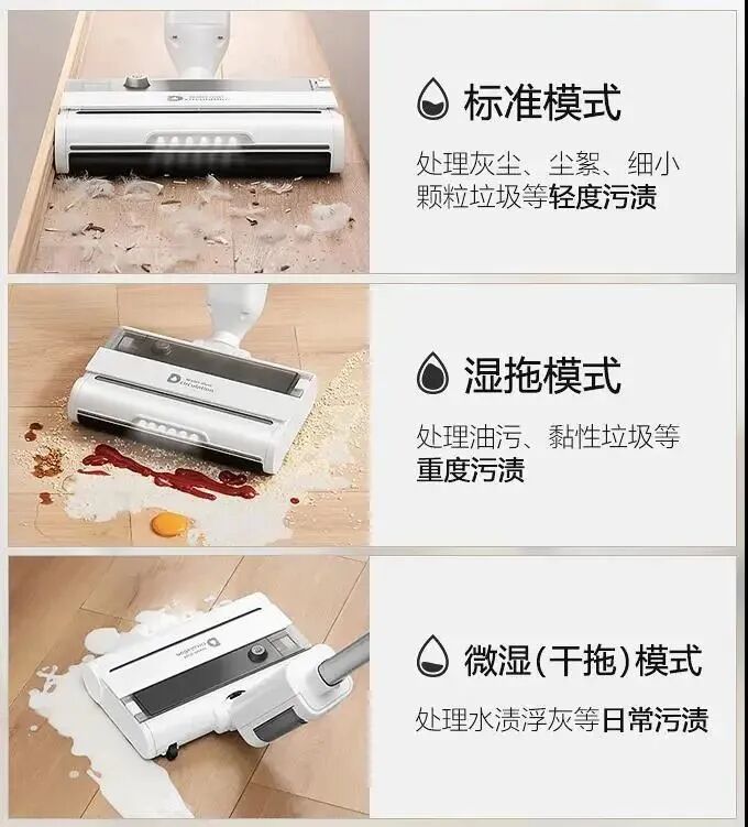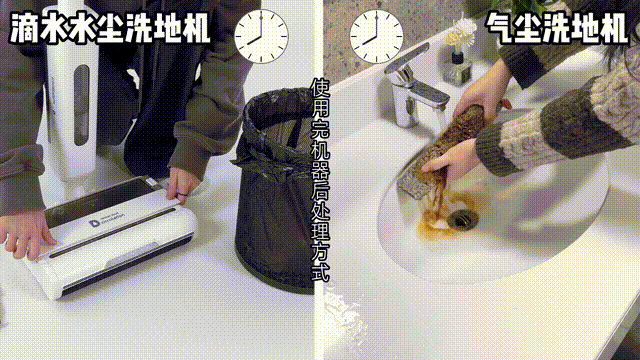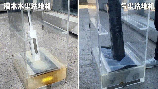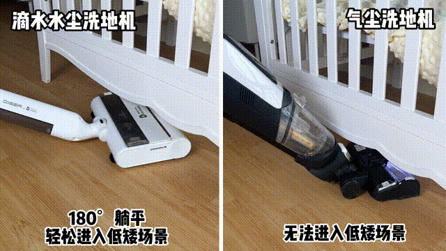 什么灰尘、干垃圾、湿垃圾、宠物的毛、我们的毛发等各种你家所有会出现的不明垃圾,它都能清洁地干干净净。首先是扬尘问题,澳洲昆士兰科技大学研究人员发现,所有真空吸尘器都会排放微尘和细菌到空气中,是室内一部分的PM2.5来源。传统洗地机/吸尘器都是用吸力做清洁,吸力越大,功率也就越大,不可避免的灰尘也就越多,带来的扬尘二次污染。这是传统清洁电器的共同弊端,家里有易敏宝宝,或者本身就有鼻炎等呼吸道疾病的朋友们要注意一下这方面的问题。而滴水洗地机则是为这类人群而生的,水尘环流技术是利用水流将地面上的灰尘直接带入污水箱;全程没有大功率风机,实现0扬尘排放率,这也是滴水洗地机更适合带娃家庭的原因所在。再就是噪音,对比起市面上大部分的洗地机,滴水洗地机因为没有吸尘风机,无高频噪音;它的噪音分贝仅仅只有60dB左右,不伤害小孩听力的同时让你实现低噪音沉浸式清洁世界。滴水洗地机采用的是水尘环流技术,这样就不需要考虑水流倒灌会不会烧坏风机。可以在清洁的时候可以做到上下90度,左右180度旋转,平放高度仅仅只有8cm,还有探照灯;可以无死角清洁每一个角度,适用于床底、沙发底、柜子下面等边边角角;传统洗地机都说自己能“干湿分离”,其实最终还是全都进了同一个污水筒。只不过大一点的固体垃圾,会留在污水筒的上部;而液体和沙土之类,会在筒底混合成浮着奶沫的“咖啡”。可以看到图中的污水和干垃圾都聚集在垃圾箱底部,需要伸手进去掏,那恶心感...yue~而且滴水为了方便干湿垃圾的清理,很贴心的设计了干垃圾盒和污水盒。清洁完干垃圾就倒入垃圾桶,湿垃圾就倒入水池,丝毫不用自己动手去分类。然后就是清洁度,滴水洗地机采用水尘技术,通过水来清洁所以拖过的地方都很干净;而像传统洗地机都是用吸尘原理来清洁的,避免不了关机后,管道里的污水会回流到地面的情况。滴水洗地机拖过后滚动会自清洁,每次拖地后都会被清洗一次,每次接触地面都是干净的滚筒。如果不及时进行二次清洗,就等于用这些污渍拖完了整个家。吸地一时爽,清洁“火葬场”...特别是家里有宠物有女士地上很多毛发的家庭;如果统一被吸掉,头发会纠缠着其他垃圾分布在滚筒,吸风口,褶皱的管道里,十分的难清理。尤其是传统洗地机只是中间有个窄小的吸风口,吸力再大也不能完全带动缠在一起的头发。滴水的干垃圾盒里还有一个隔绝毛发的刷子,平时家里的毛发被清理后就在刷子上;而且当你在拖湿垃圾的时候,经过滚筒的水渍、油脂会被清理干净;丝毫不会越拖越脏,简直不要太爽了,比其他某些洗地机真的干净很多!![]()