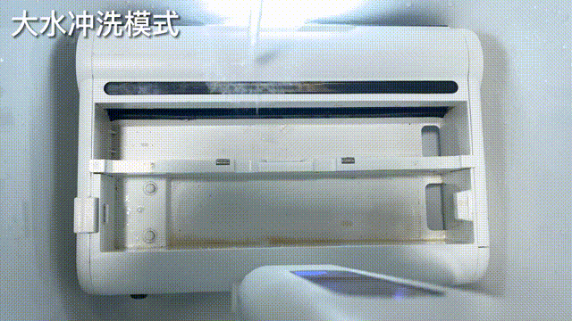 边冲边打开清洁模式,滚刷边转动边清洗。这可是用一杯水和一桶水清洗的区别!