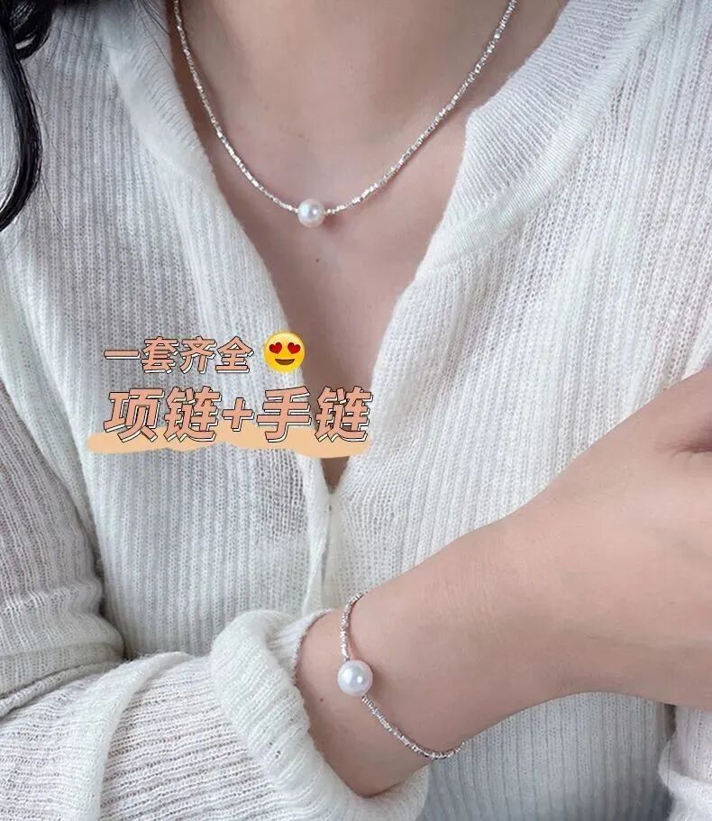 碎银珍珠手链+项链:199元