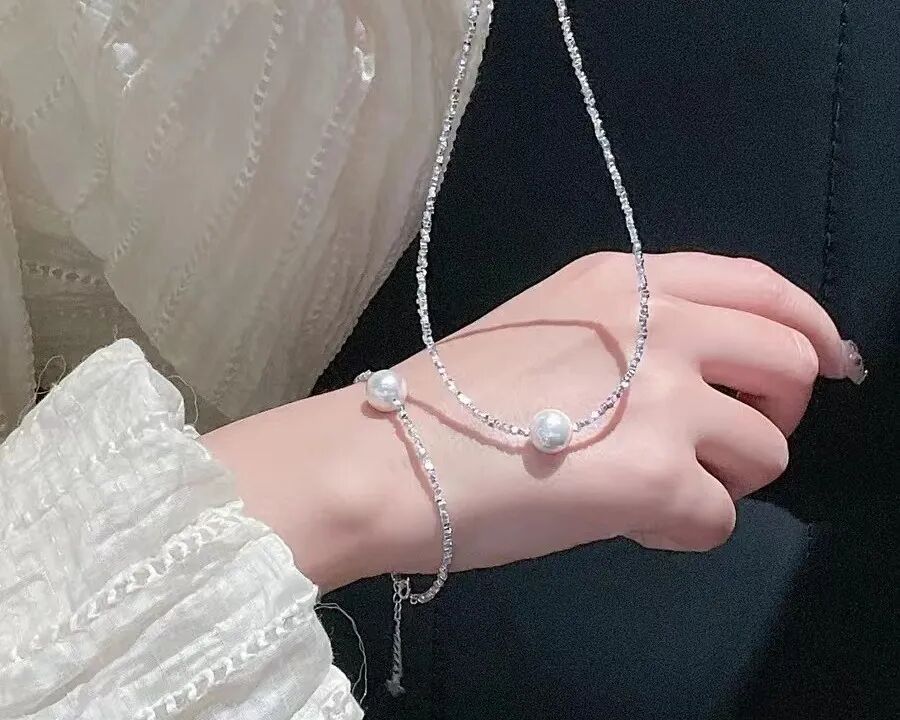 淑女类的小衫小裙裙也可以自由搭配~随便一拍都是氛围感满满,戴起来真的分分钟爱上!清冷氛围感美人瞬间拿捏,有种把银河戴在身上的感觉,上身超显气质超显白!日常又优雅,很适合上班族、或是走气质女人路线的仙女~加上这个款式也是很基础的简单款,比较不容易过时,反而更加经典。锁骨链长度40cm+5cm延长链,手链长度16cm+5cm延长链。整条项链就是肆意自由有率性,女人味却也丝毫不减。尤其现在到夏天了,整条小吊带锁骨漏起来。再安排一条碎银子项链,氛围感直接拉满,是不是已经开始狠狠地期待了?碎银子闪闪的光泽感,每个角度都blingbling,就像银河挂在手腕上,真的是一低头就被它闪到~比肌肤更加耀眼的碎银子,搭配圆润的奥地利贝珠,整体非常光滑有质感,带上气质感迎面而来!碎银寓意岁岁平安,珍珠寓意和谐美满,一定要给自己安排一个!同系列项链和手链,毫不意外的好看,无论是搭配什么衣服都很出彩。百搭耐看怎么都不会出错~快艾特你的好闺蜜一起来戴!当然,也可以给重要的人安排,不管是什么日子,都愿所爱之人永远陪在身边。珍珠首饰是经久不衰的,或是优雅稳重,或是清灵可爱。不管你在任何年龄段的女生,都有能打动你心的款式和品种。那种温润如玉、气质典雅的感觉,其他晃眼的宝石是没有的。它还能衬托女生的美,在这么多昂贵又绚烂的珠宝里面,只有珍珠,是需要生命才能孕育出来的。圆润大方的珍珠,拥有和谐与美满的本质。珍珠之美,在于那种宽容的态度,接纳对方的缺点。给你爱的人或者闺蜜,送上一套珍珠配饰,背后的深意和情意都拉满。通体s925银链,可以放心戴;搭配施华洛世奇贝珠,高品质光泽感强,无暇饱满。官方价498元的珍珠项链/手链,今天特惠低至89元起拿下!手链+项链组合下单更优惠,只要199元!一物一证,每条项链礼盒还配有国检证书+品质绒布包装+手提袋+质保卡。如此精美走心的礼盒+礼袋包装,不管送自己、送给爱人,都很用心~上手真是肉眼可见的精致,优雅大气百搭,款式不会烂大街,快点在盛夏来临之际get它!BAOFANDI宝梵迪碎银珍珠饰品系列