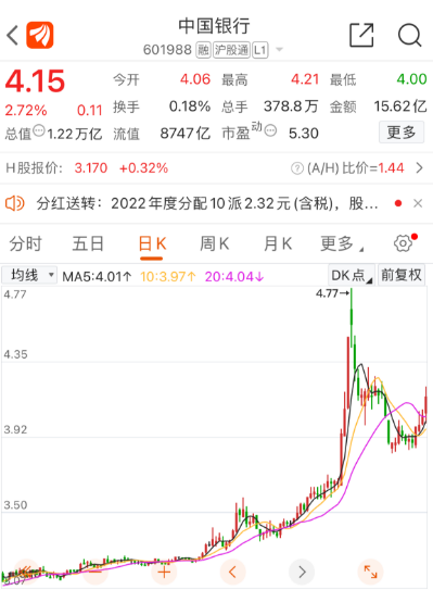 这一波拉升,银行股普遍在几个月内上涨了约50%左右,K线图是这样的。