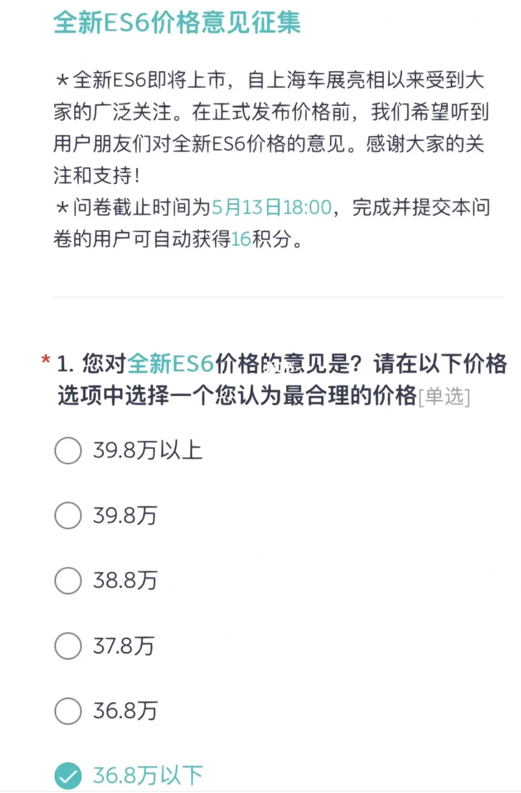 ES6 在发布的时候就整了售价的调查问卷,而它的起售价也比老款便宜近两万。
