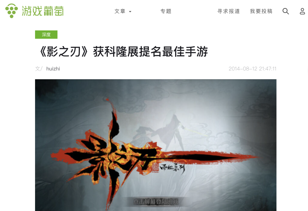 2014 年,传承自雨血系列的《 影之刃 》,以万众瞩目的姿态闯入了游戏市场。在那年的德国科隆游戏展里,最佳移动游戏奖被提名的三款分别是《 任天堂全明星大乱斗 3DS 版 》、《 最终幻想节奏剧场:谢幕 》,以及《 影之刃 》。