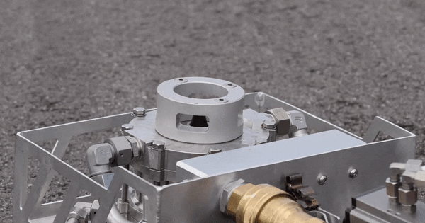 它带有一个向上穿刺的喷枪,可以不用顾虑车身上面熊熊燃烧的大火,直接从底部迅速戳穿电池的防护板,然后就能从下往上把整个电池包灌满水。