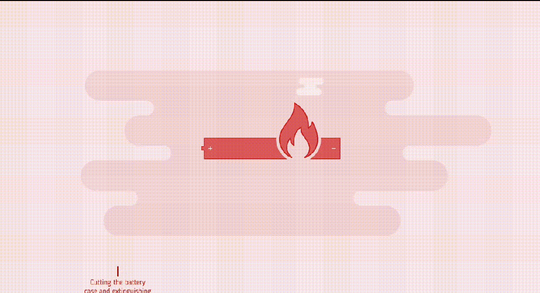 这个系统除了浇水灭火,还融合了前面的电动车专属灭火方案,能够快速切开电池壳并灌入特制的电池灭火剂来灭火。