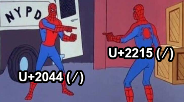 U+2215 ( ∕ )和 U+2044 ( ∕ )