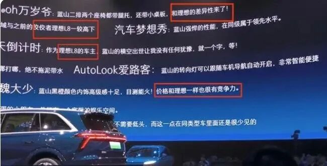 比如长城魏牌前段时间推出的蓝山,类似的混动技术、同样的大空间、同样的冰箱沙发大彩电,价格还比理想车型便宜,从发布会上就能看出就是冲着理想去的,上市后首月销量就超过了 5000 辆。