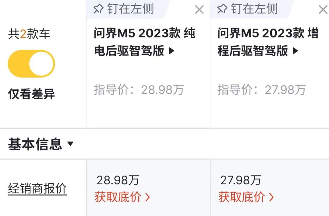 我们看看市面上的同时有纯电版和增程版的车型,没有例外,全都是增程版的价格更低。