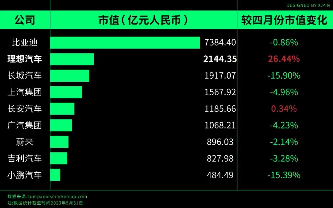 凭借这么一份优异的成绩单,理想汽车市值已经达到了 2144.35 亿元,反超长城汽车坐上了国内车企第二把交椅。