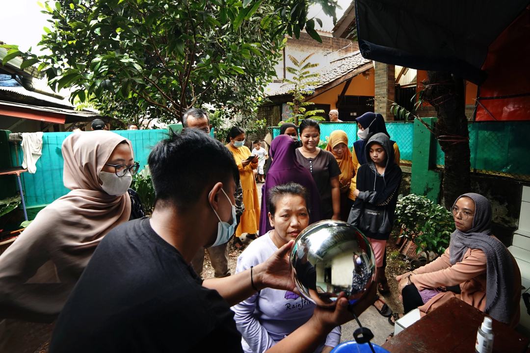 为了虹膜认证,世界币还专门开发了一个用来采集虹膜的硬件设备 Orb,这个大白球会被举起来靠近人脸进行扫描,接受扫描的人需要尽可能睁大眼睛漏出眼白,保持个 10 秒左右就能搞定。