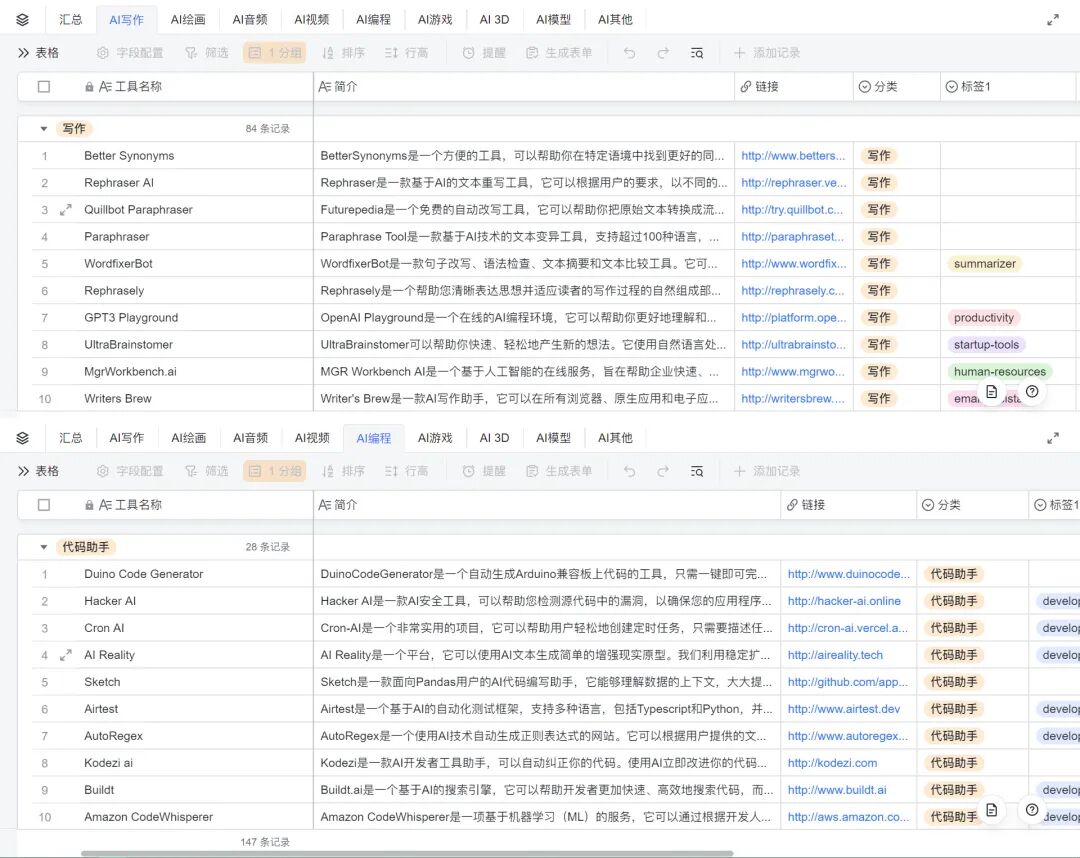 随着 AIGC 的快速发展,各式各样各种功能的 AI 工具琳琅满目,资料中收集了当下最全、最新、最主流的工具并且按照用途分类整理。