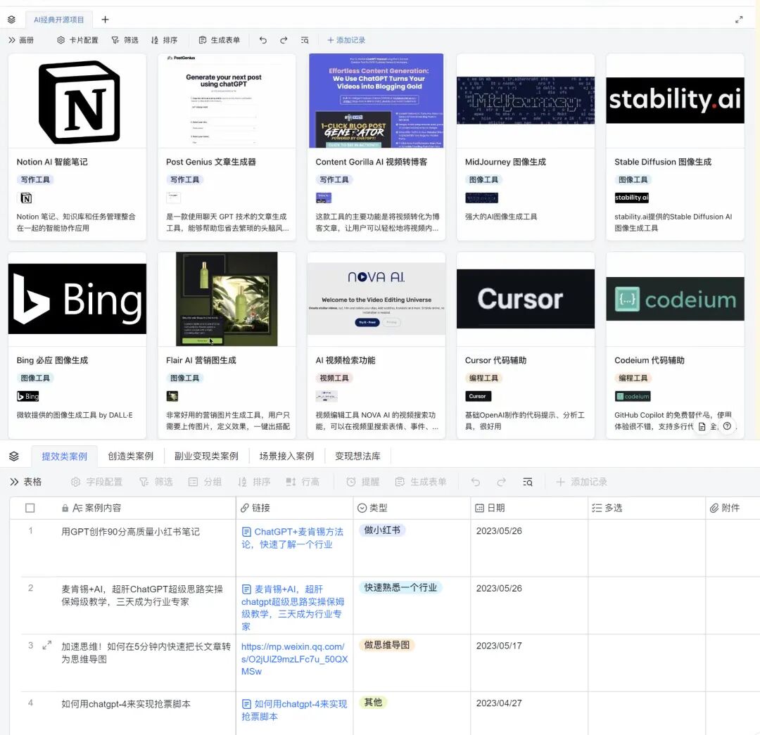 经典项目和库 + AI 相关工作 / 学习 / 生活提效案例、创造、变现案例。