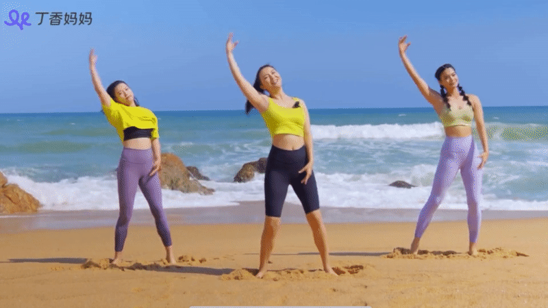 《活力燃脂操》融入了多种音乐和舞蹈元素。比如结合了芭蕾、桑巴、爵士,还有轻松欢快的 Disco 背景音乐,节奏感强,动作难度适中,跟上节奏当下释放多巴胺,感受运动的快乐。