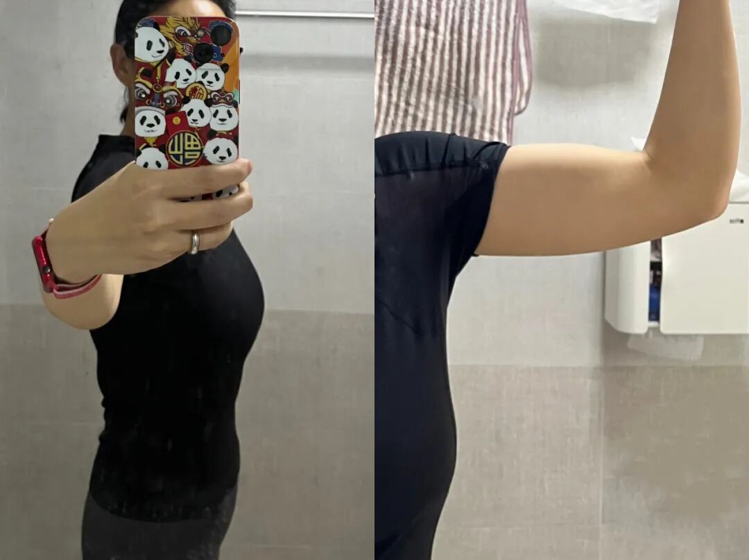 刚开始练习,简单的手臂动作都很吃力,练了一段时间就会发现自己的肌肉力量变强,同样的动作酸痛明显减少,甚至还可以隐约看到手臂肌肉线条。