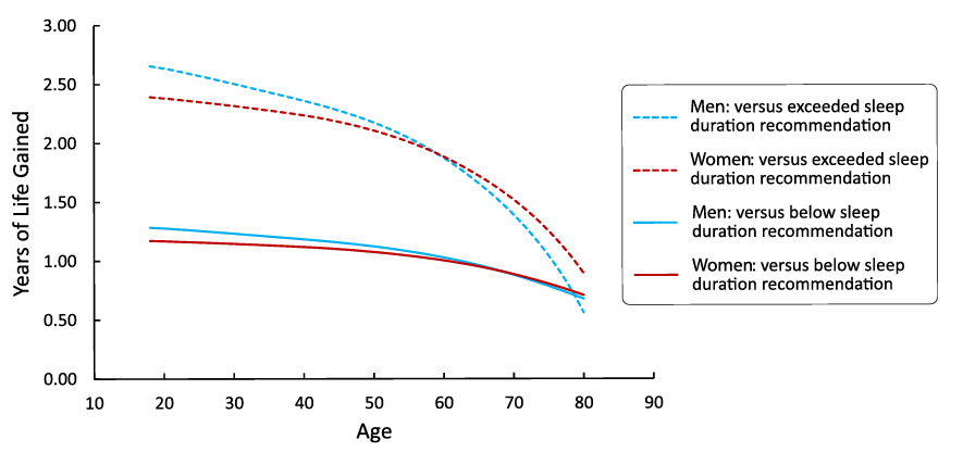 睡眠时长对健康状况的影响也会体现在预期寿命上。