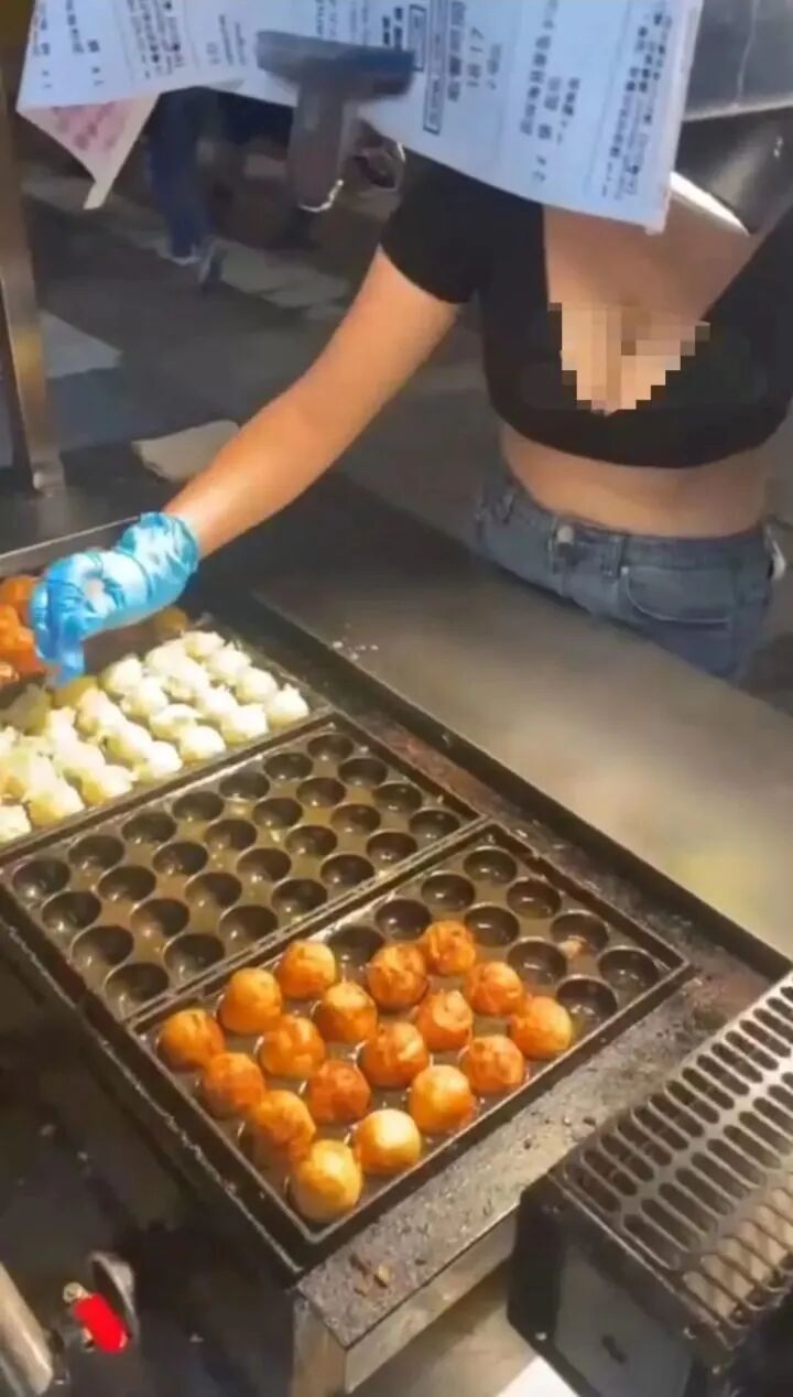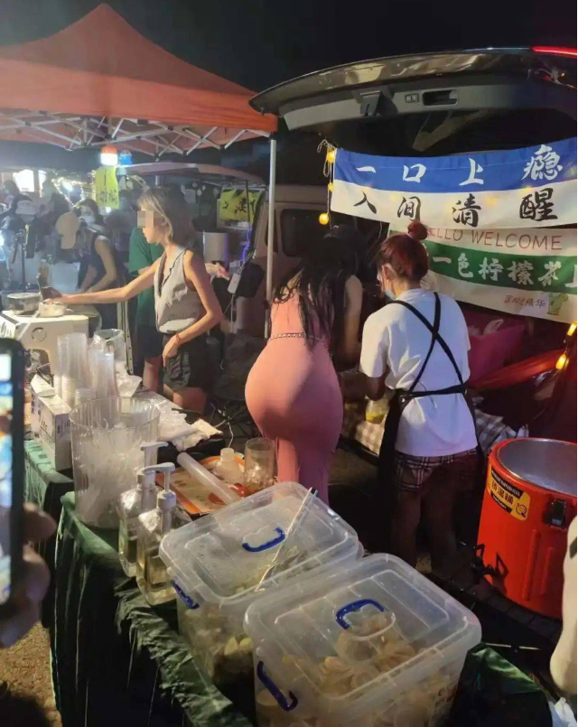 这种吸引顾客的“方式”已经稳稳的成为了各位摊主的“流量密码!”由于有性感老板娘来撑门面,这道“靓丽的风景线”几乎垄断了夜市上的绝大部分顾客,