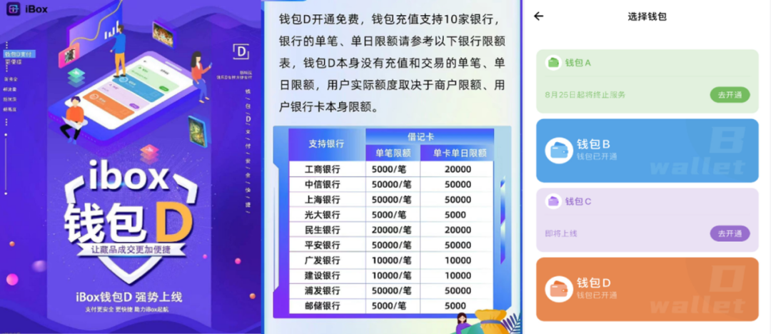 在“钱包D”上线时,iBox还表示后续会上线“钱包C”以及引入更多的支付机构。