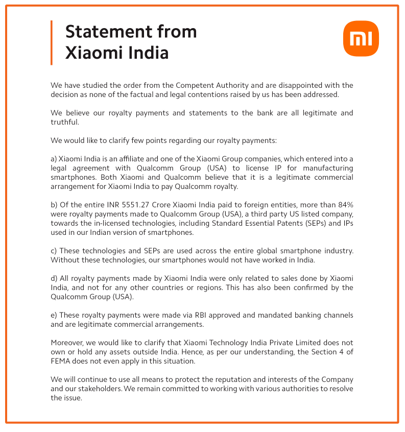 当时,小米回应表示:“我们正在研究该事项,并等待书面判决”,并重申:“我们在印度的业务,符合印度的相关法律和规定。”