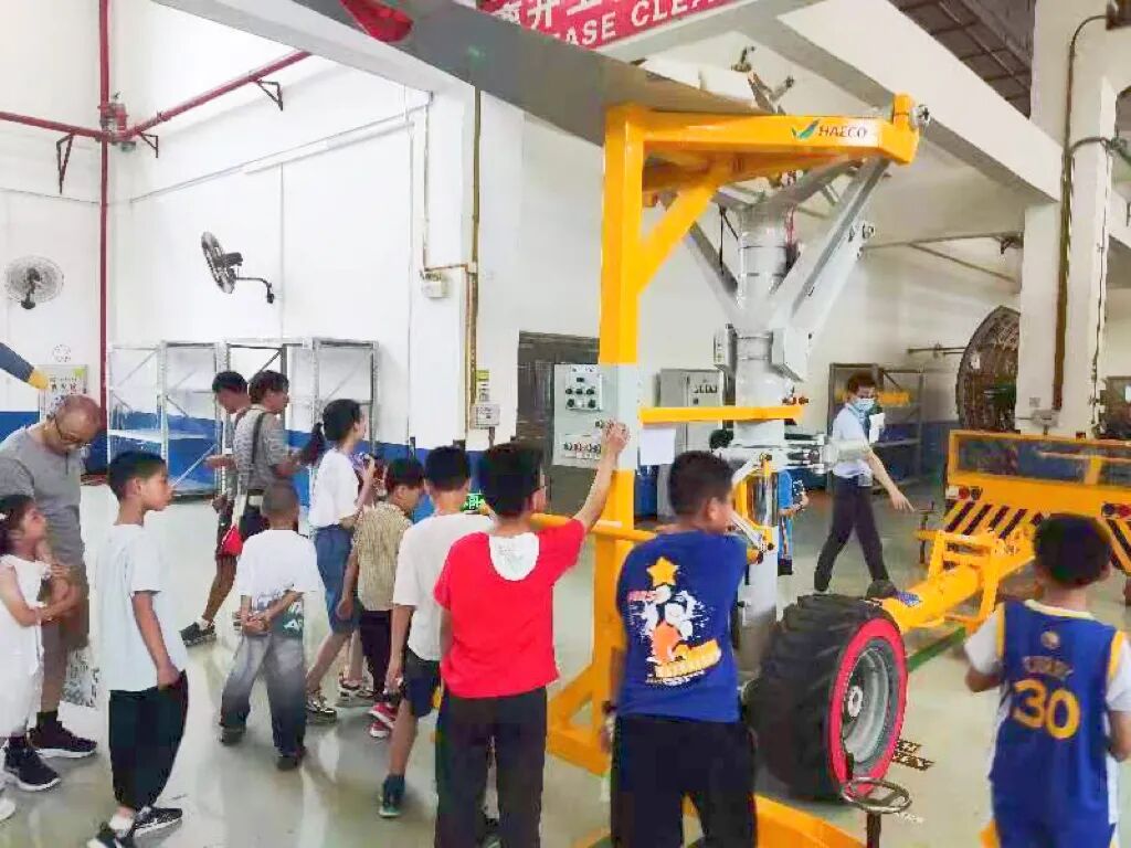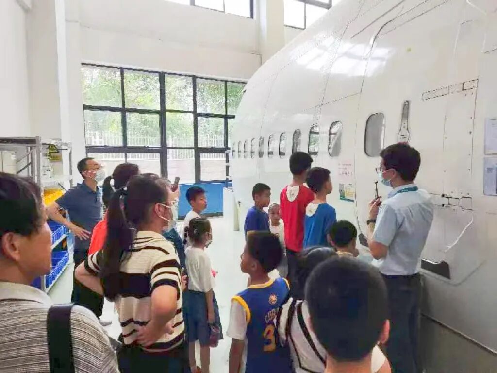 在维修培训车间,小朋友们参观了巨大的发动机、客舱、起落架等,培训老师还现场示范了飞机舱门打开和关闭的操作过程,科普了飞机在飞行过程中安全警示知识。此外,培训老师生动地讲解了车间内的各种精密仪器、零部件使用场景和连接方式与飞机的飞行原理等。孩子们通过眼看手摸等,感受飞机工业魅力。