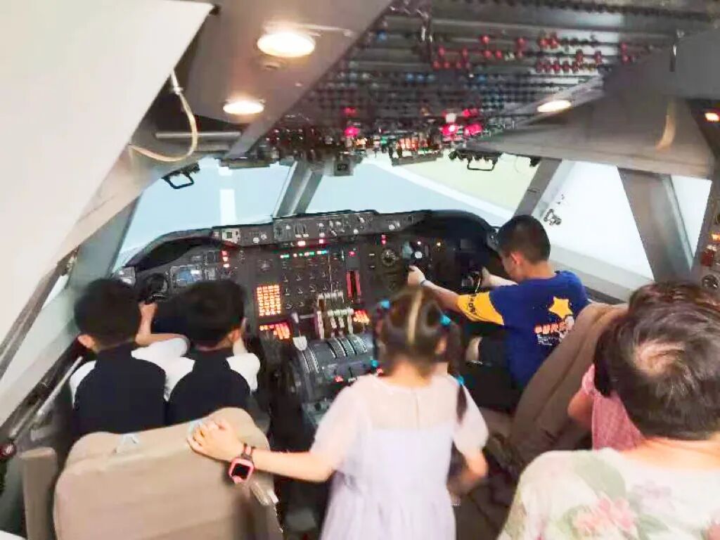 ▲孩子们在模拟驾驶舱车间还过了一把“机长”瘾。