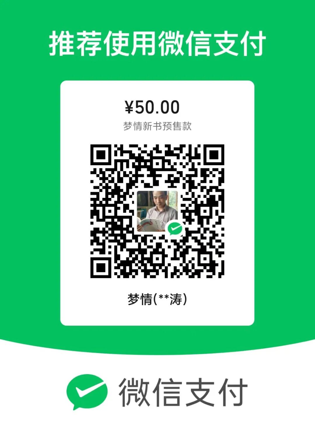 微信扫下面二维码付款50元,付款备注请填写清楚您的收件地址、姓名、电话,确保能第一时间收到本书。