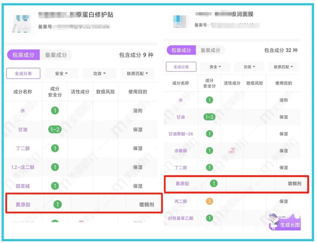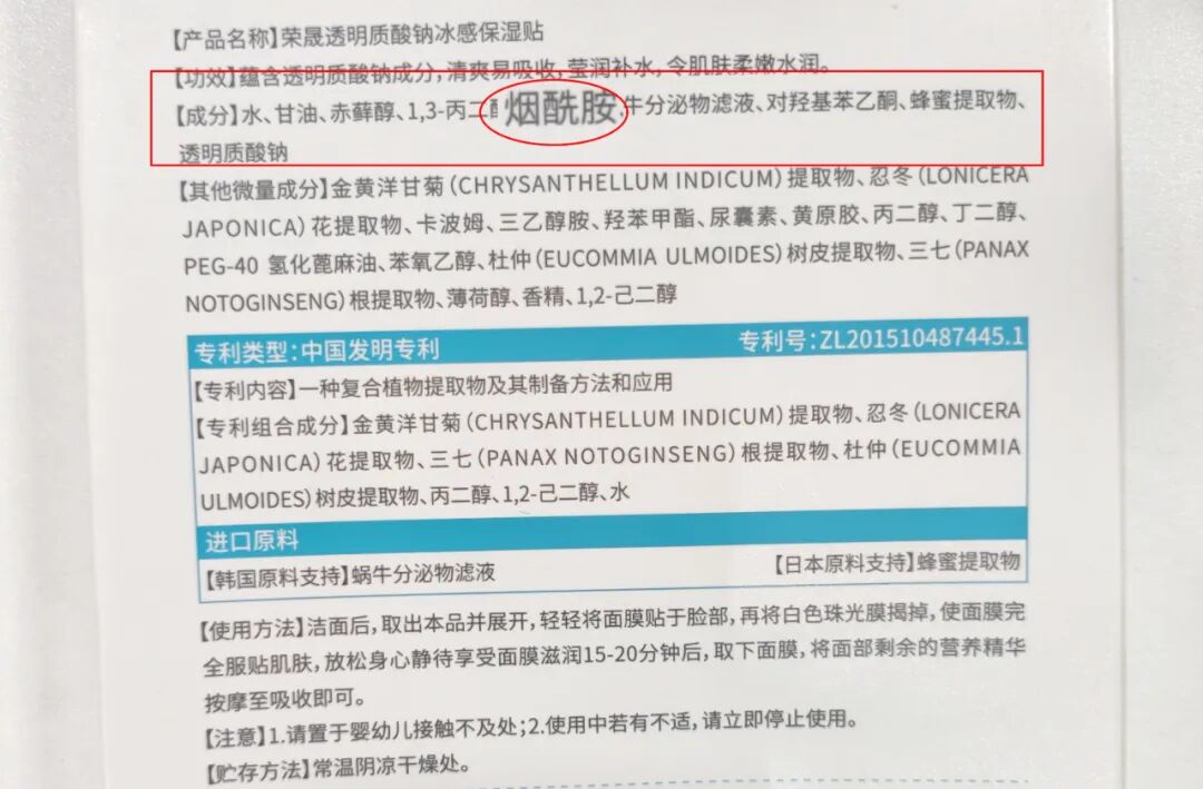 而荣晟“灭火”面膜保湿的原料全在成分表的前几位!