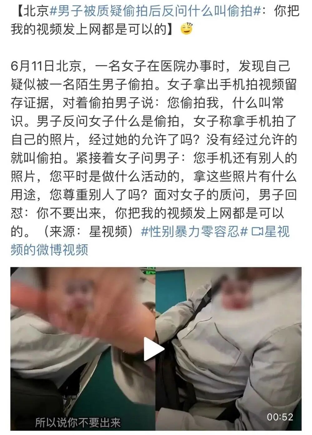 这次的争议主要集中在该女生后续的行为。男士当面证实了没有拍她后,她还把人家的视频发到网上,还加入了一些主观色彩的议论。